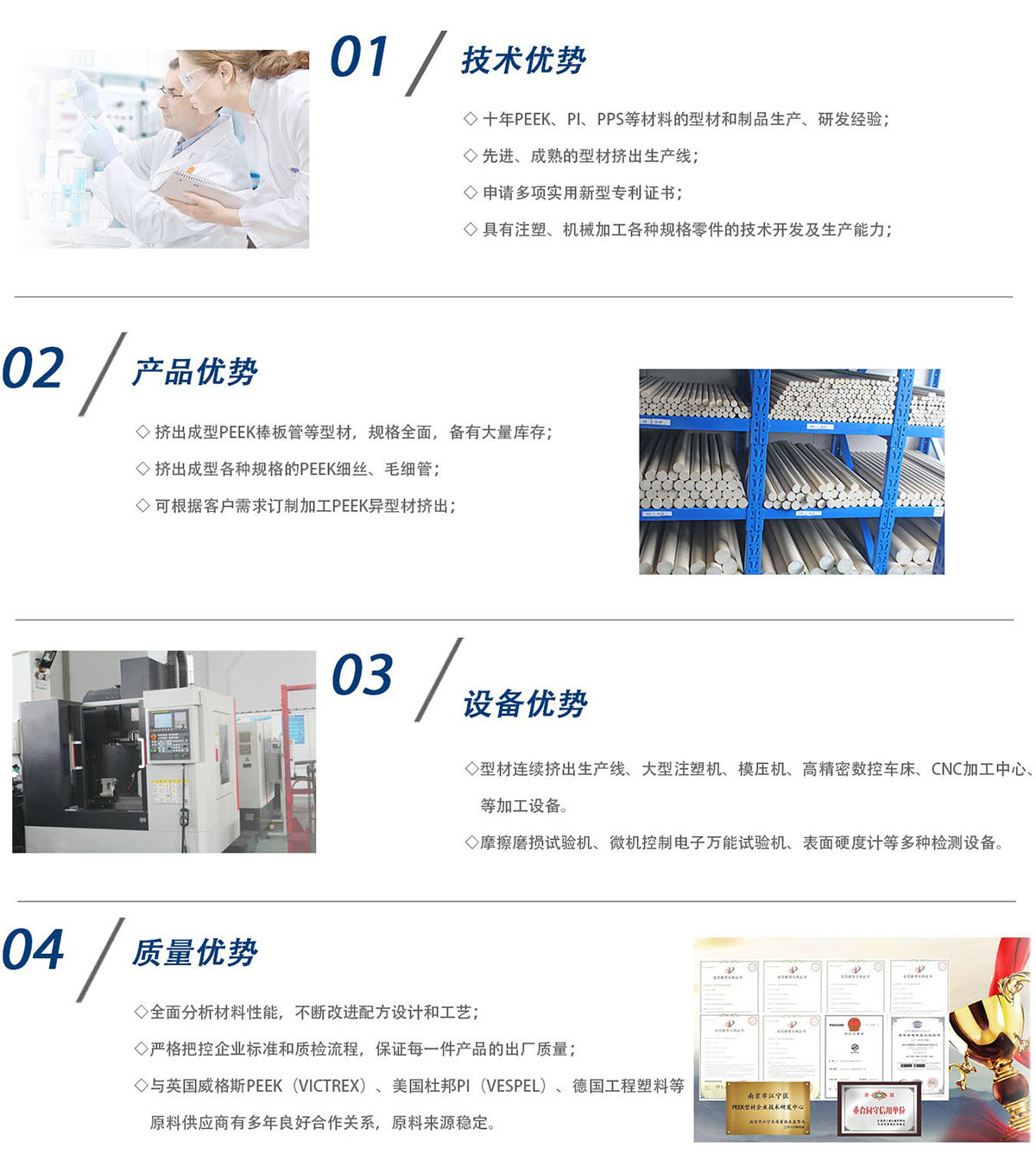 致力于PEEK、PI、PPS型材擠出和制品加工