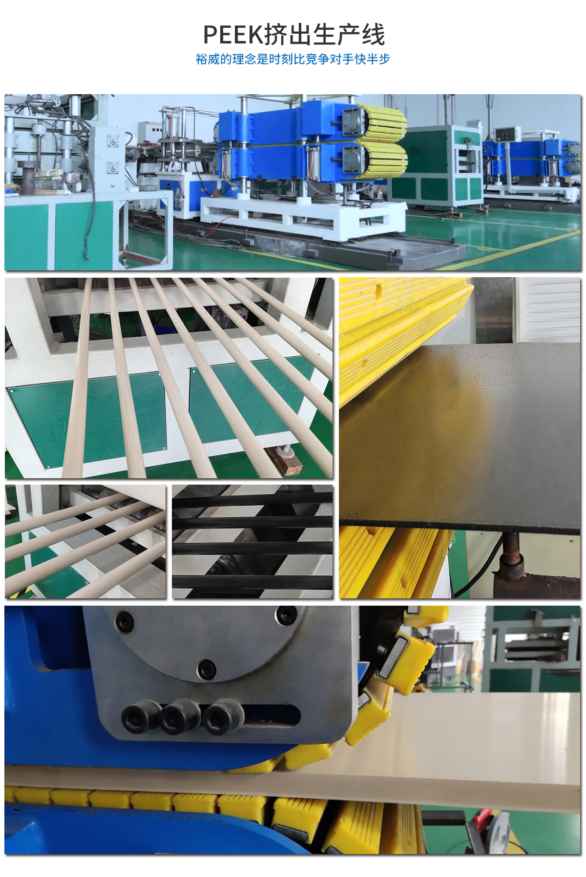 南京裕威具備PEEK棒的自主擠出生產能力。PEEK棒材從Ф4-300mm均可擠出成型,并備有大量庫存。 南京裕威生產的PEEK棒表面光滑無黑點,韌性好易加工,價格優(yōu)惠,性能優(yōu)異 ,經第三方質量檢測可完全替代進口棒材,歡迎廣大客戶咨詢選購。